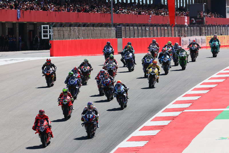 Lorsque la course a repris, sa durée a été réduite à 20 tours et les pilotes Aruba.it Racing – Ducati ont pris le meilleur départ. Alvaro Bautista a mené les deux premiers tours, sa première fois en tête depuis la première manche de l’année, tandis que Nicolo Bulega a été dépassé par Razgatlioglu au troisième tour. Le pilote turc a pris la tête dans le même tour et a mené le peloton jusqu’à l’arrivée.