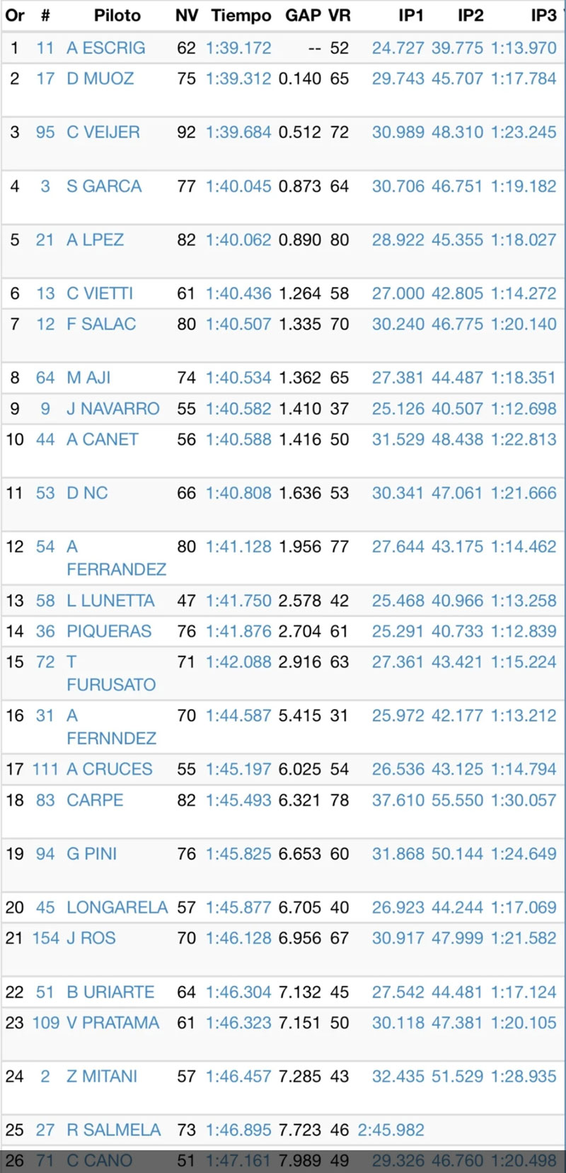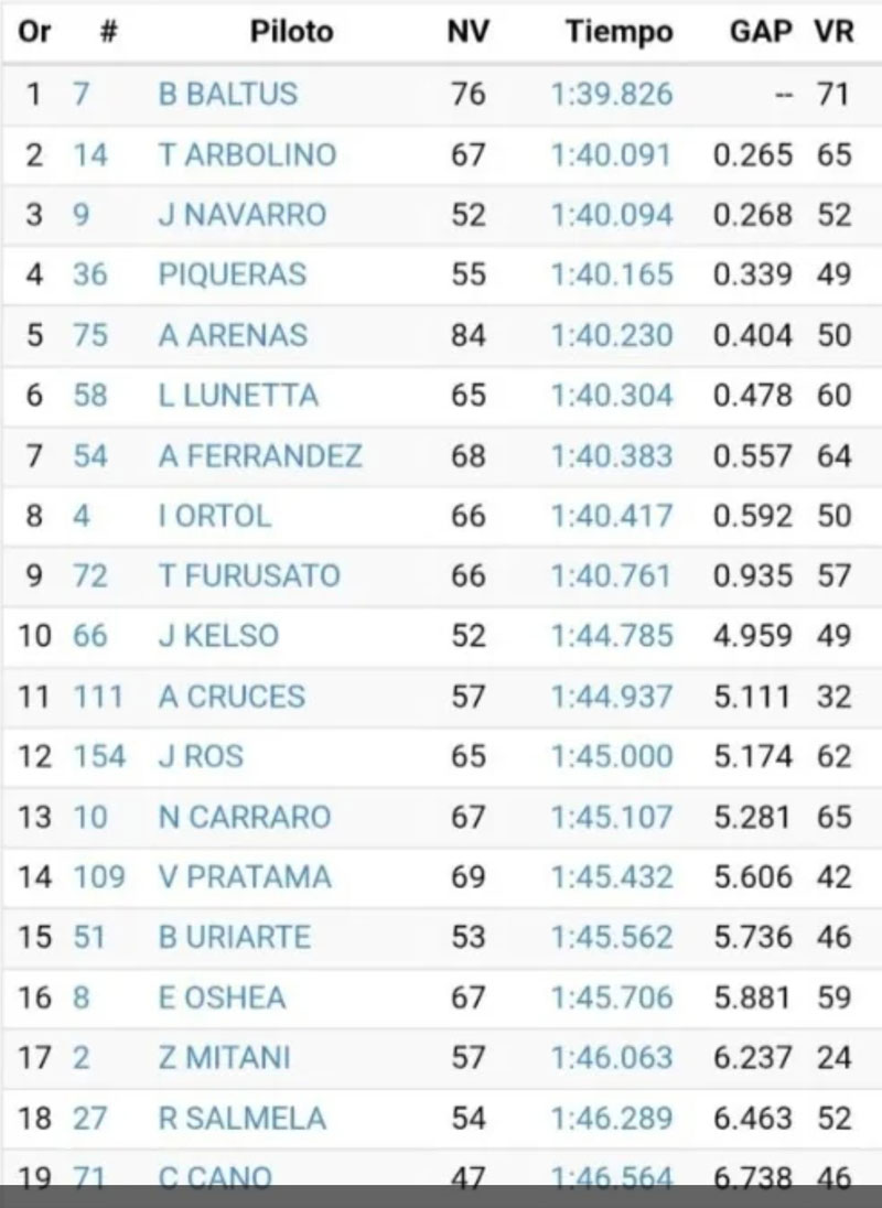 Là, le record officiel est en 1’43.710 et appartient à David Alonso depuis 2024, alors que José Antonio Rueda s’était montré le plus rapide lors du test officiel de février 2025 en 1’43.357.