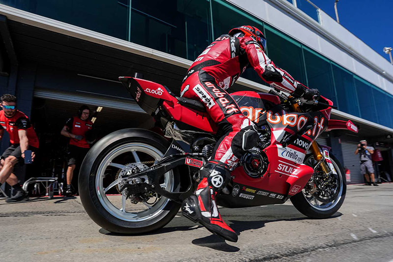 Au guidon de la nouvelle Ducati Panigale V4 R à bras oscillant traditionnel, « Bulegas » a immédiatement retrouvé ses marques sur un tracé qu’il affectionne, réalisant 1’29.451 le matin et 1’29.345 l’après-midi.