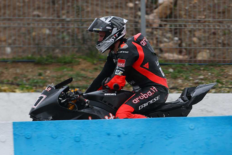 En milieu d’après-midi, les deux pilotes d’Aruba.it Racing – Ducati ont été victimes d’une chute sans gravité au virage 5, piégés par une zone encore humide du circuit. Quoi qu’il en soit, leur séance s’est achevée quelques minutes plus tard avec le retour de la pluie sur le circuit de Jerez de la Frontera.