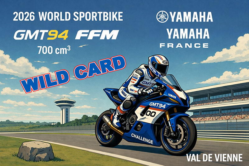 Depuis son accession au Championnat du Monde Supersport, le GMT94, la FFM et Yamaha France offrent chaque année à un pilote français l’opportunité unique d’une Wild Card pour participer à la manche mondiale du WorldSSP disputée en septembre à Magny-Cours.