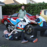 « A ma gauche la Honda RC213V-S, 4temps, 215 chevaux avec le kit Racing, de Bruce Anstey, 10 fois victorieux au TT et vainqueur de la course Superbike TT 2015 sur CBR1000RR Fireblade, à ma droite, la Suter MMX 500TT 580cc, 2 temps, 195 ch, de Ian Lougher, déjà neuf fois vainqueur au Tourist Trophy … »