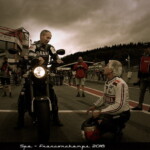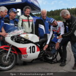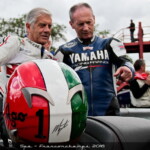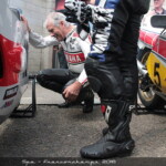 – Giacomo Agostini effectue presque toujours ses démonstrations au guidon de la Yamaha TZ 700 1974 avec laquelle il a gagné Daytona, une moto mise à disposition par le Yamaha Historic Racing Team d’Hubert Rigal avec l’aide de Yamaha Europe. Mais pas question pour autant de rouler sans tout vérifier auparavant, en particulier les suspensions, que le pilote italien trouve souvent trop dures. A Spa, il a donc incombé au célèbre Jacky Germain de régler ces dernières, in extremis, avant le départ.