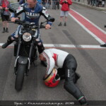 – Toujours à Spa, Ago a participé à la grande parade au guidon d’une Yamaha de série qu’il ne connaissait visiblement pas très bien; une XJR 1300. Là encore, pas question de simplement monter dessus et de partir avec ! Le roi a passé de longues minutes à tout détailler, élément par élément, n’hésitant pas à se coucher en dessous à de nombreuses reprises pour voir comment était faite la machine…