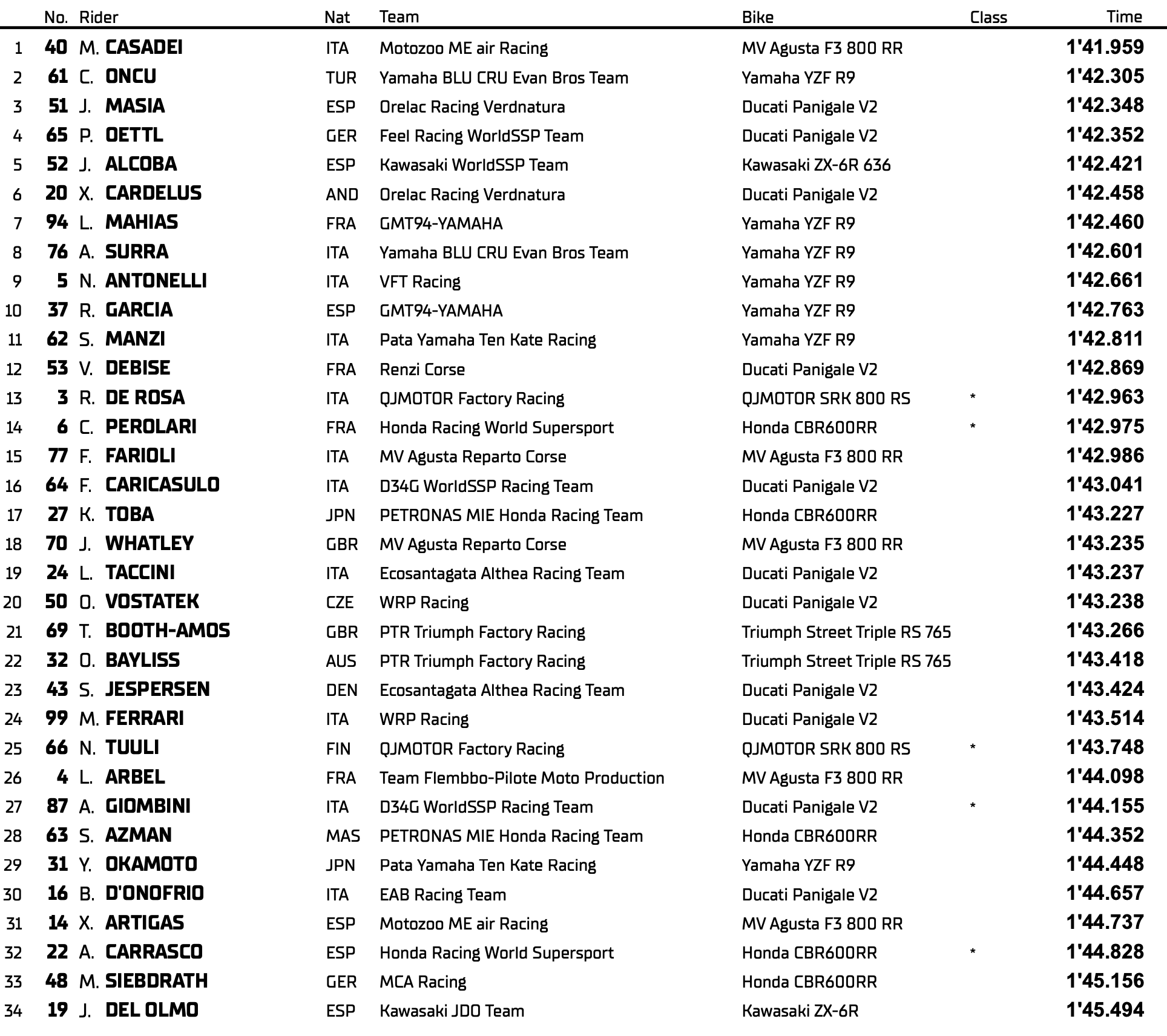 WorldSSP Jerez (J1) – Le classement de la Superpole :