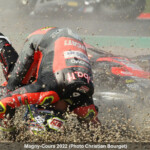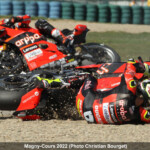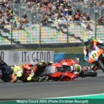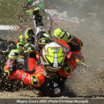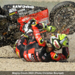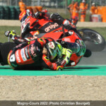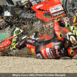 Entre les Grands Prix MotoGP à Misano et à Aragón, notre infatigable photographe Christian Bourget n’envisageait pas de rester un weekend à la maison, aussi s’est-il rendu à Magny-Cours pour couvrir le Championnat du monde Superbike. Et comme son expérience de près de 50 ans le place souvent au bon endroit au bon moment, il a immortalisé la chute d’Álvaro Bautista qui a fait et fera sans doute encore couler beaucoup d’encre…